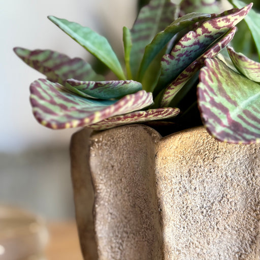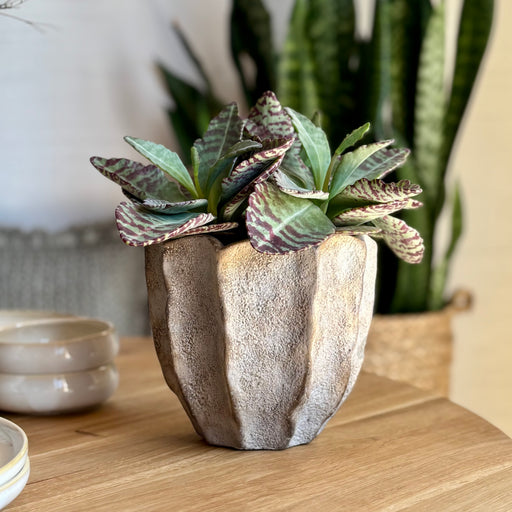 Der Blumentopf Colleen zieht mit seiner gewellten Oberfläche und der rauen Textur sofort Blicke auf sich. Die reaktive Glasur in hellen, natürliche...