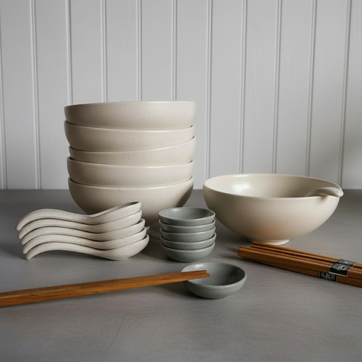 Formschöner und hochwertiger Löffel aus Steingut im Asia Design für Ramen & Co. Perfekt um deinen Tisch asiatisch zu dekorieren. Im dezenten Fa...