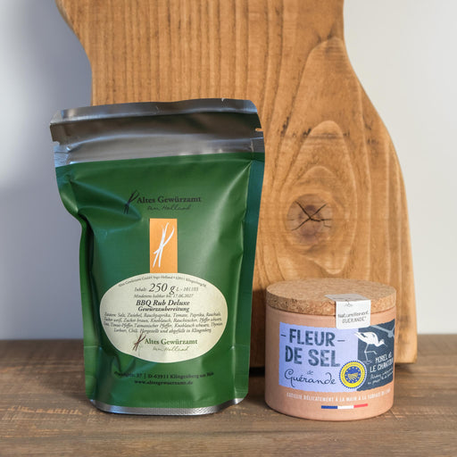 Ein weiteres BBQ Set für den perfekten Grill-Moment, es enthält: Gewürzmischung BBQ Rub vom Alten Gewürzamt im Wert von € 18,70 Feines Fleur de Se...