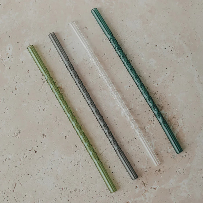 Gedrehte Trinkhalme aus Glas 20cm - 4er Set